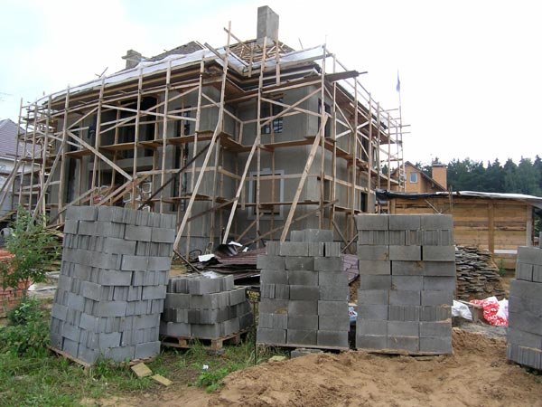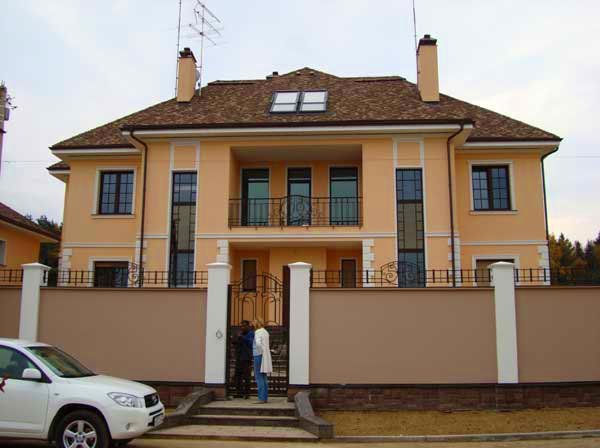Это - один из наших самых интересных объектов. Задача архитектора и проектировщиков заключалась в том, чтобы дом, построенный по типовому проекту, обрел индивидуальность, скромную и интеллигентную, будучи при этом дополнен спутниками - на участке планировалось возведение еще нескольких строений.