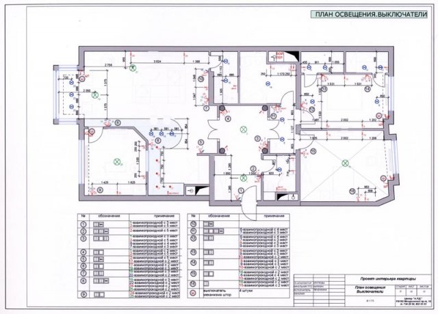 - План освещения. Выключатели. Спецификация электроустановочных изделий